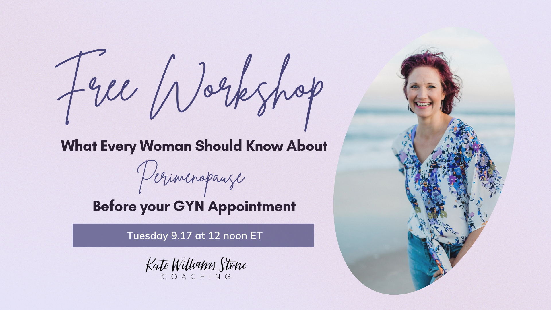 Join Kate Williams Stone, a trauma-informed and feminist health coach, for a transformative workshop designed to help women in perimenopause take charge of their health.