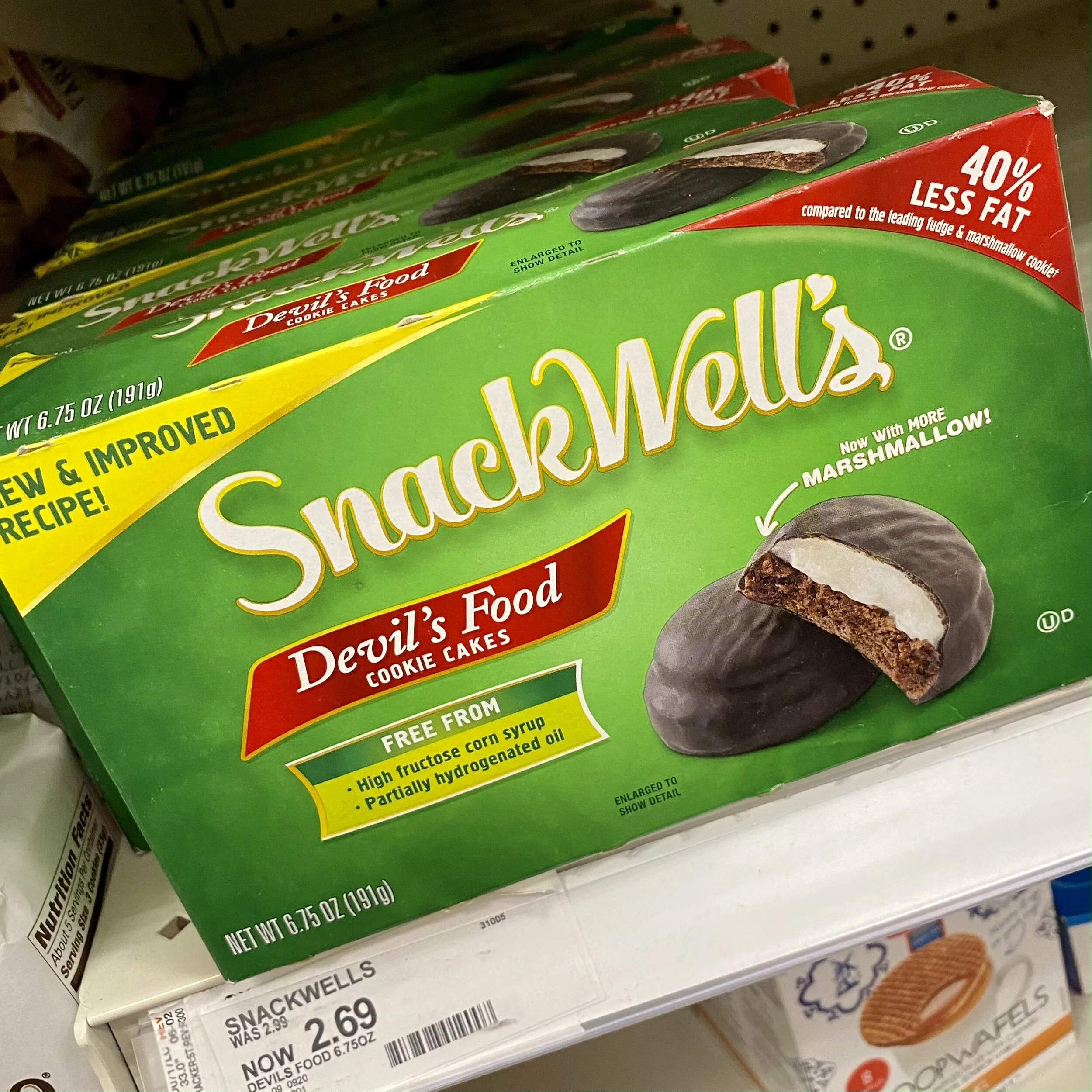 Flashback to me in college: I would eat boxes and boxes of Snackwell’s chocolate fudge cookies. I thought it was ok to eat the whole box (or boxes) because they were low fat.